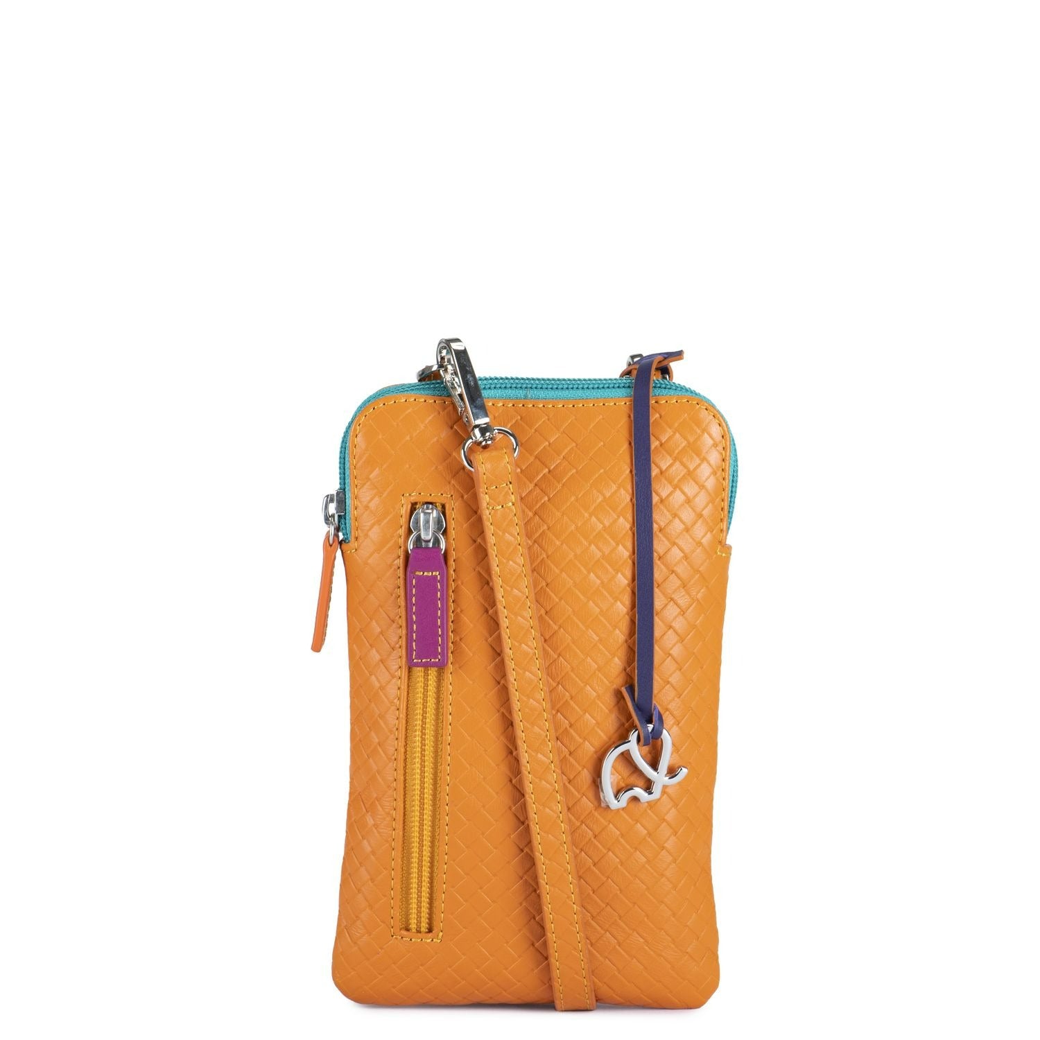 Introducing MYWALIT's new simplified cell phone embossed crossbody bag; a fresh, modern crescent design in soft leather and adjustable strap. A must-have for a woman on the go!