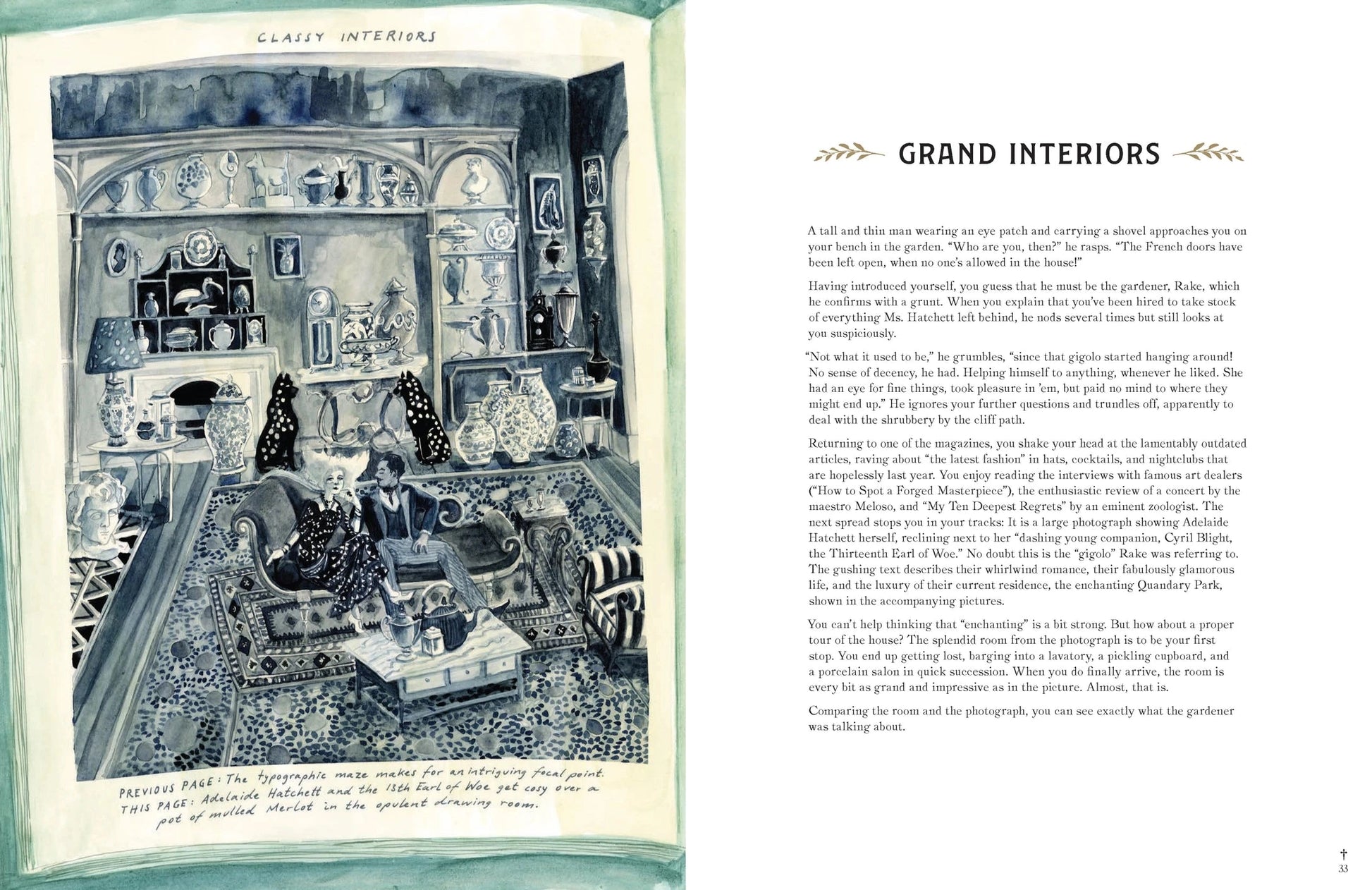 Thanks to your puzzle-solving prowess, you’ve been hired to investigate the events surrounding the death of Adelaide Hatchett and her quirky cast of party-guests-turned-suspects, including the high-spending scoundrel Cyril Blight, the infamous tattoo artist Tatiana Outlawe, and Bertrand Hellebore, the retired botanist who is convinced Adelaide’s last will and testament was forged.