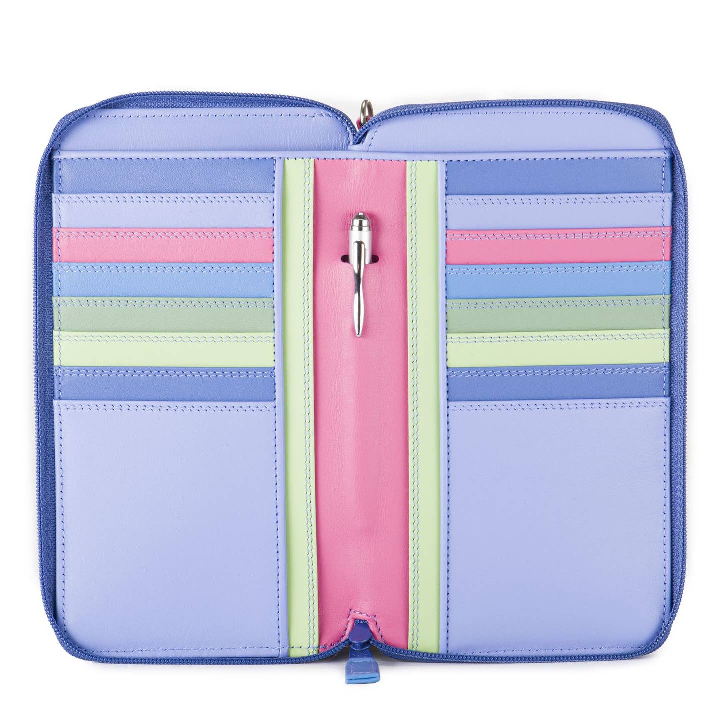 A compact yet spacious, this purse has room for a smartphone, 16 credit cards, cash and a secure zip pocket for coins. The adjustable shoulder strap makes it perfect for travel and going out, and a silver mywalit pen adds the finishing touch!