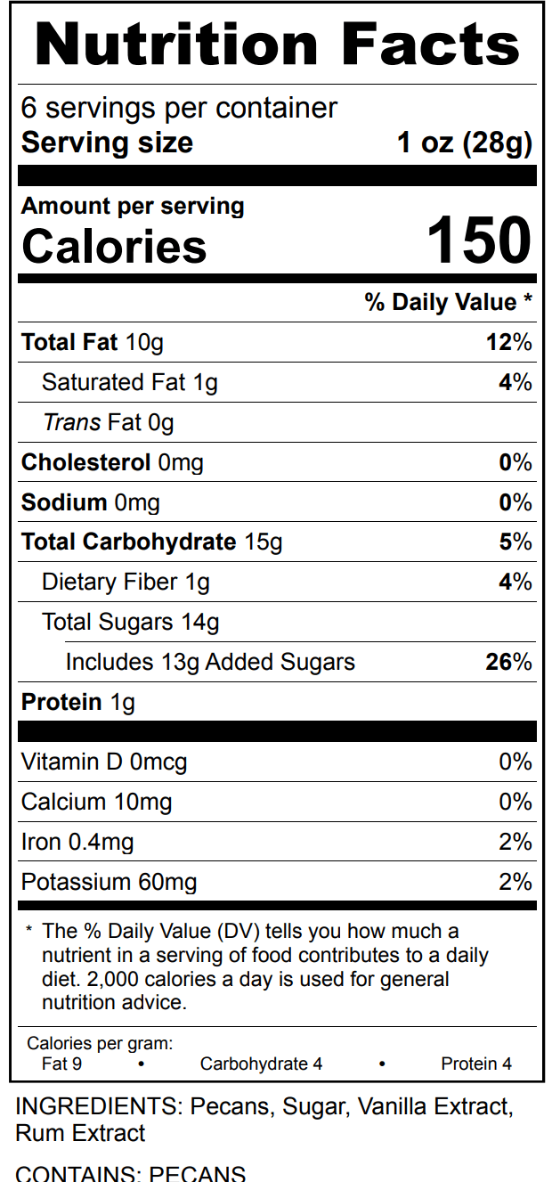 Vanilla Rum Pecans | Gourmet Candied Nuts Gift | 6oz Box